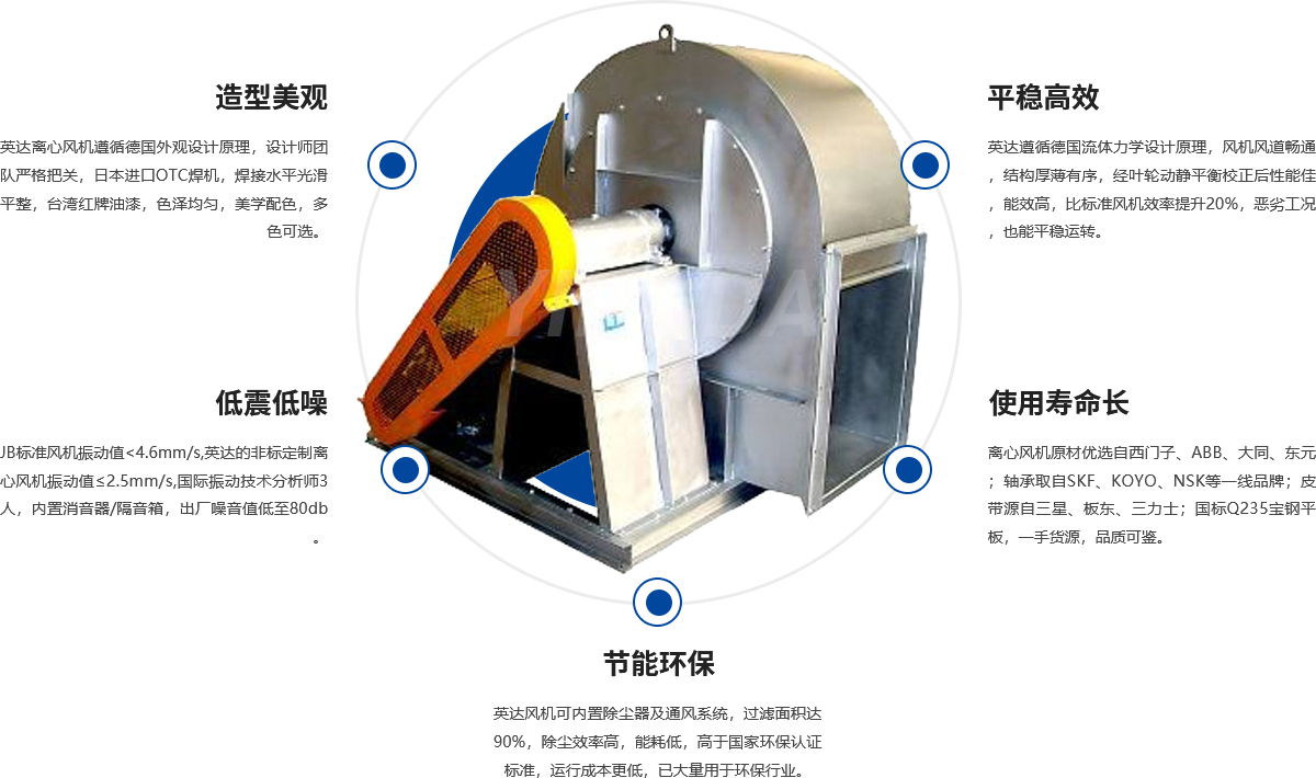 風機葉輪、機殼可(kě)選用優質Q235碳鋼,304不鏽鋼,玻璃鋼纖維,全部模具化生產,采用電焊、手(shǒu)段,表麵清(qīng)潔平整、不存在焊接變(biàn)形現象,葉輪經(jīng)動、靜平衡校正,其平衡精度不大於4.0級(jí)。