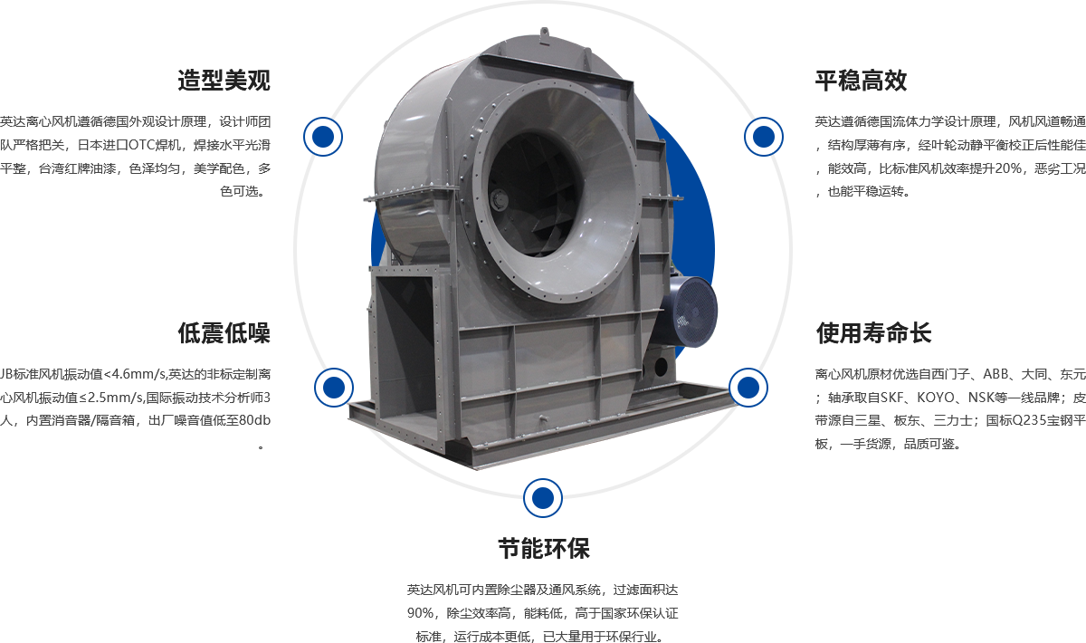 中壓(yā)離(lí)心通風機(jī)廣泛用於環保行業、通風送風、粉塵送排風(fēng)行(háng)業、工業爐行業等等等各個領(lǐng)域,是工農業生產中主要耗能設備之一。離心式通風機是除塵通風係統(tǒng)中(zhōng)四大件之一, 是一種比較精密的運轉機械,依(yī)靠葉輪的轉動在風(fēng)機內部形成負壓,將外界氣體吸入並經(jīng)葉輪流(liú)道和蝸殼排出風(fēng)機(jī)。 離心式通風(fēng)機主要由機殼、 葉輪、 機軸、 集流器、 排氣口、 軸承箱體、聯(lián)軸器、 皮帶輪及(jí)底座等(děng)部件組成(chéng)。